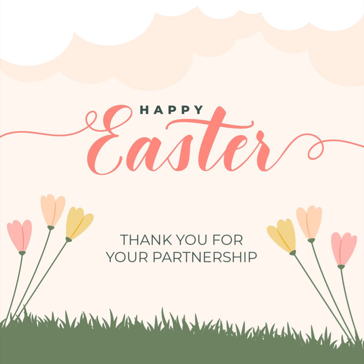 Easter business eCard, thank you email template, partnership appreciation, client gratitude email, professional Easter card, corporate holiday template, free business email templates, Gmail Outlook compatible, cloudHQ templates, relationship building email.